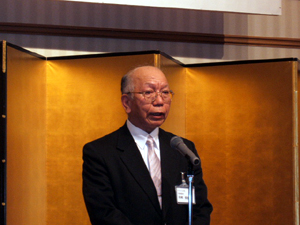 【理事会代表挨拶をする北海道同友会常任理事の柏崎氏】