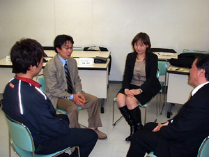 ?А峇管?大学になぜ参加したか」を切り口に、話す人・質問する人に分かれて話し合う