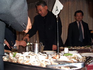 試飲会には約80名の方々が集い、厚岸の牡蠣「カキえもん」とともに日本酒4種類を飲み比べながら「あっさり味があう」「いや、深みがあるこっちの方がいい」など様々な意見が飛び交いました。今回、厚岸から若狭町長も参加し、「地域活性化に願ってもいない取り組み」と同友会へ大きな声援を頂きました。