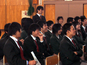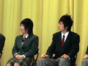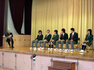【緊張しながらも五十嵐氏の質問に答える生徒達】