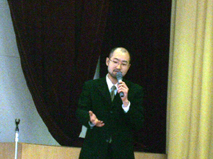 ぜひ、学生の皆さんは「働く」ということについてじっくりと考えて欲しい。私は「働く」とは「傍(はた)を楽(らく)にする」こと、つまり人の役に立つということだと思っています。人間というのは一人では生きられません。今着ている服で寒さを防ぎ、この場にある体育館を使って話をしています。この服や体育館というのは自分以外の誰かが働いてくれた成果を享受しながら快適な生活ができている。皆さんも、社会人になったら自分の持っている能力を発揮して社会の一員として、他の人の為に働き、その結果として給料を頂き生活していくことになります。