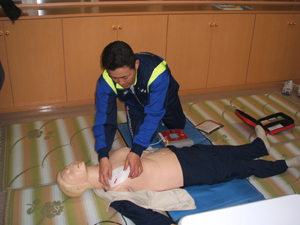 斉藤さんは、昨年日本赤十字社の救急法指導員の資格を取得しました。AEDは、突然心臓停止状態に陥った時、心臓に電気ショックを与えて正常な状態に戻す医療機器です。特に2004年7月からは医療従事者だけでなく一般市民も使用できるようになり、中標津空港や町立病院にも設置されています。