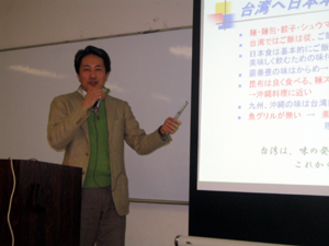 「台湾は人口が2300万人(2005年)で総面積が36,000Km。日本と台湾の産業構造もほぼ同じで、経済的にも成熟しており十分なマーケット規模があります。台湾人の食習慣は?ヽ或?比率が高い?▲戰献織螢▲鵑剖瓩た佑眤燭き7鮃?にとても気を使う等の特徴があります。企業として台湾との貿易に取り組む注意点として?.肇奪廚里笋覽き△泙困蝋圓辰討澆覘?自分の目で見る・感じる・味わう?い任?ることから始める?ッ膣屬箸笋襦?考える??自分達がやる・行政に頼らないことが大切です」