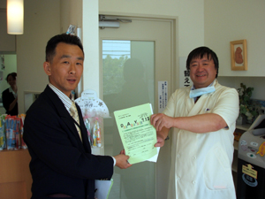 【菅原副組織委員長(左)とよしもと歯科・矯正の葭本院長(右)】