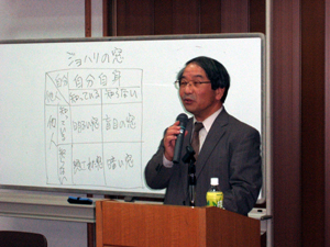 今回の研修会では、これからの時代に求められるリーダーシップや部下から信頼されるリーダー像、コミュニケーションのありかたについて学ぶことを目的として開催し、石田氏より?‖燭?の人材育成、組織改革に携わって感じた点、?△茲蠅茲ぢ仗祐愀犬鮹曚?為に、というポイントを中心にお話いただいた後に、自己診断用のコミュニケーションスタイル調査表をもとに参加者それぞれが自己分析を行いました。