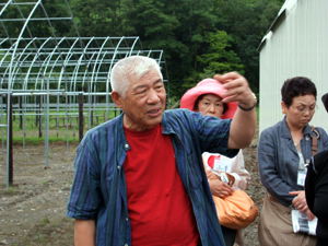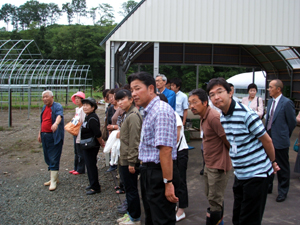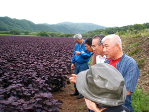 白糠鍛高地区で生産される無農薬の赤じそを原料にしたしそ焼酎『鍛高譚』。この発案者は、同友会白糠地区会会員、(有)紫香舎の平賀さんです。参加者は紫蘇畑を見学させて頂きながら、商品開発の取り組みについて伺いました。