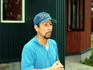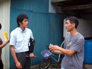 【紫蘇畑を前にして語る平賀代表】