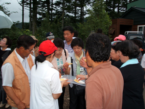 【酪恵舎のチーズを試食する参加者】