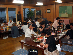 一般参加者のツアーは、残念ながらここで終了。釧路支部会員と白糠地区会会員は山内水産が経営する「やまかん」へ向かい交流会を開催しました。
