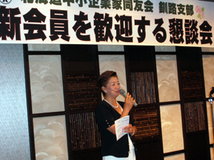 「このような大勢の仲間が増えて本当に嬉しい。全国的にみても同友会釧路支部は情勢が厳しい中でも会員数が飛躍的に伸びています。同友会には偉い人はいません。まずは、積極的に参加して顔を覚えてもらうようにがんばってください」