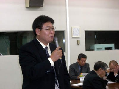 【本郷代表理事へ質問をする石森釧路支部幹事長】