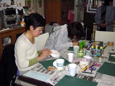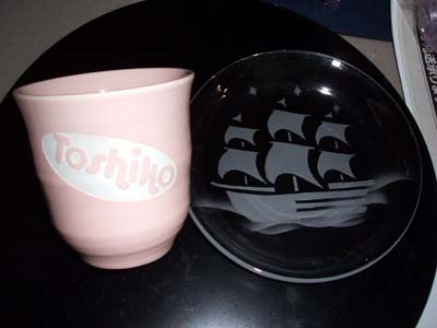 約2時間の作業で出来上がったマイカップ、小皿(ガラス製品)