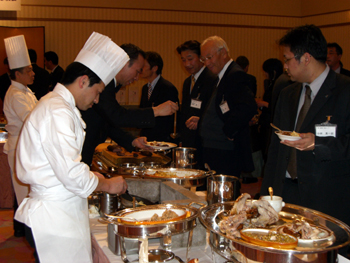 【釧根管内の食材を使った料理の数々を満喫する参加者】
