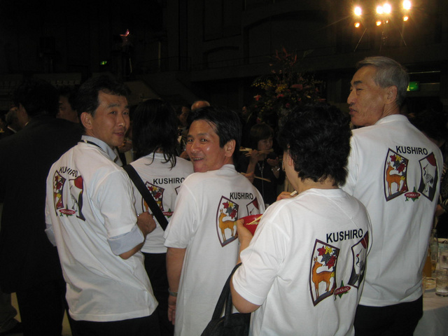 懇親会には釧路勢11名が揃いのオリジナルティーシャツ(花札模様)着用。これが1500名の中でも良く目立ち。大好評。このおかげで話しかけられたりもしたし、最後はステージに乗り沖縄のカチャーシーも踊ってしまった。ラグナガーデンホテルでの2次会も200名ぐらいが参加し、ここでも全国や沖縄の人と交流を深める。北海道同友会の評判は意外と良かった。最後は部屋に集りワイワイとくすねてきた泡盛を飲む。