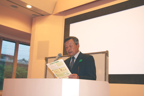 鈴木さんは、厚岸の森林面積は41,800haで、町の面積に占める林野の割合が57%に達する森林の町であることを最初に指摘しました。さらに「森林は水源涵養、土砂流防止、市民の憩い、野生生息域の提供、酸素の生産という大切な役割を果たしている」と森林の有用性を述べる一方で、「ロシアのプーチン政権が木材の輸出税を上げてきたので、外材に依存している北海道の木材は値上がりと同時に品薄状態が続いている」と危機感を募らせました。