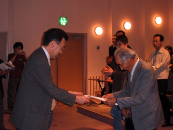 【宮原学長(左)から厚岸マイスター認定証を受け取る受講者たち】