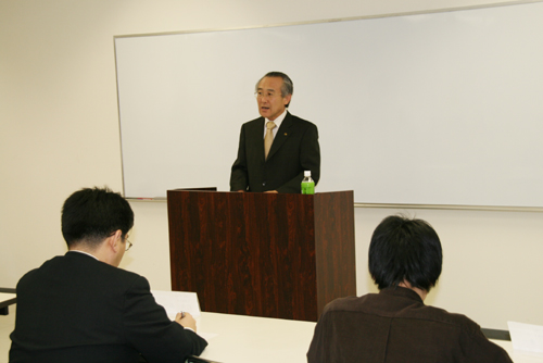 「大型店が市場から商品を買わなくなり、卸売り会社を取り巻く情況が激変している」と自社が中央卸売市場から地方卸売市場に組織形態を変化させた経緯に触れました。さらに企業で期待される幹部の資質として、「経営者や幹部は悪い情報も遮断しないで上にも下にも伝えて欲しい。風通しの良い組織をつくることがが肝腎だ。部下をほめるのは過去の努力を認めるからであり、逆に叱るのは彼の将来を思うからだ。公私混同を避けて部下には限りない愛情を寄せて欲しい」と語り掛けました。