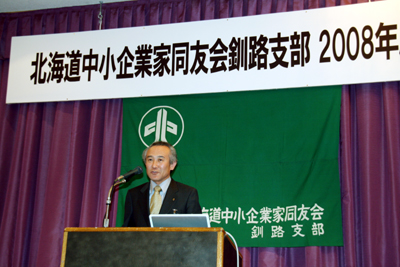 北海道同友会釧路支部は2008年度総会を17日に開き、活動方針案と予算案を採択し新しい役員を選出しました。5年間にわたって支部長を務めた横地敏光氏が退任し、新支部長には綜合設備代表取締役の亀岡孝氏が就任。活動方針には、釧路市中小企業振興基本条例の制定運動の強化、9月に開く同友会祭り(三丁目の夕日祭り)を成功させることなどが盛込まれました。
