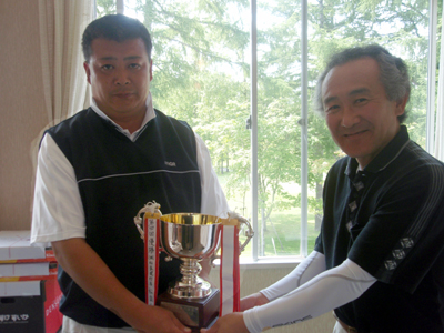 【優勝した伊勢興業の伊勢さん(左)と会長の横地さん(右)】