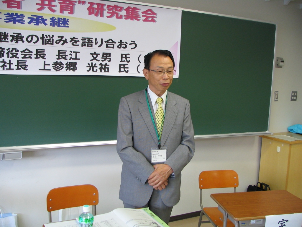 長江氏は開拓農家の長男に生れ、釧根原野の山奥で造材や炭焼きをして少年時代を過ごし、長じて釧路で建材会社を興しました。「後継者をつくることが社長の最大の仕事」と語り、異業種への参入も積極的に行なっています。後継者に求められる条件として、「社内への報告・連絡・相談を徹底する、先代のお客さんや仕入先を大事にする、仕入先との飲食はしない、幅広い人脈をつくる」の四つをあげました。
