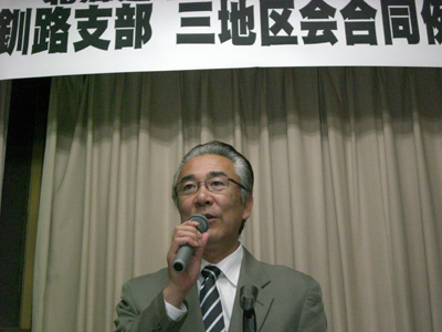 釧路支部(亀岡孝支部長)は17日に釧路支部三地区会合同例会を開き、厚岸地区会、白糠地区会、摩周地区会会員が厚岸町に集いました。また、『故郷の歴史と自然〜厚岸・白糠・摩周』と題して厚岸町学芸員の熊崎農夫博氏が記念講演に立ちました。