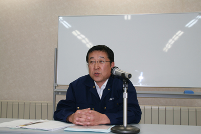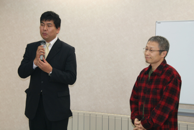 ▼講演する石川量平さん