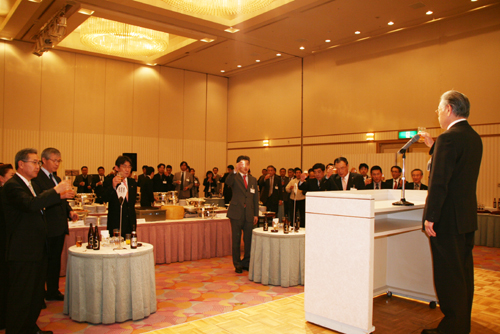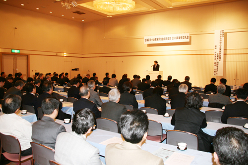 釧路支部(亀岡孝支部長)は15日に2009年の新年交礼会を開き、130名の会員が集い盛大に新年を祝しました。また「これからの中小企業振興政策と企業家に期待すること」と題して、蝦名釧路市長が新春記念講演に立ちました。