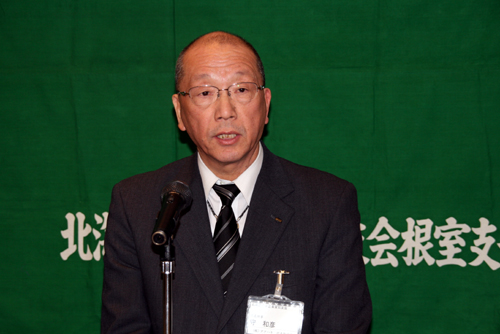記念講演に立った渡辺氏は、1999年の中小企業基本法の改正により国の施策に大幅な変化が生じたと述べ、「地方再生のカギは地域の中小企業の育成・支援にかかっているといっても過言ではない。中小企業振興基本条例では、中小企業振興を経済政策の中軸に据え、市長の責務を明確化している。同友会の3つの目的の一つ『よい経営環境をつくる』ためには企業間の連携、同友会、自治体、商工会議所、市民との連携によりはじめて実現されるものだ。根室市でも制定を目指し、運動を展開してほしい」と述べ、中小企業振興基本条例による緊密な連携こそが、地域経済活性化に必要不可欠な要素になると強調しました。