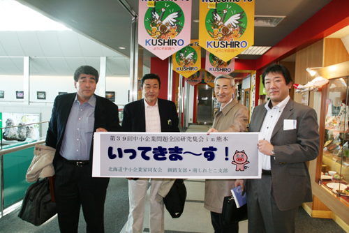全国から1200名の会員が集まり、中小企業問題全国研究集会が今日から熊本県で開かれます。釧根三支部からは5名の会員が参加し、中小企業振興基本条例や地域経済などの分科会で最新情勢を学びます。11日に釧路空港から旅立ちました。
