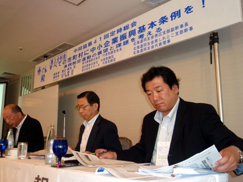 2007年11月に発会した別海地区会は、企業組織率が20%を超え、会員数も53社と地域における影響力を強めています。山口氏は地区会一丸となって進めてきた条例制定運動の要諦に触れ、「同友会の地区会ができなければ条例は制定されなかった。行政と交渉する時は会員数が重要になる。だから別海地区会は会員拡大と条例制定運動を同時に進めた。会員数が少なければ正論を主張しても行政は腰をあげない」と指摘し、条例制定と会員拡大を車の両輪にして運動を組み立てることの大切さにについて語りました。さらに山口氏は、「中小企業が地域から消滅することは、私たちの子供たちの故郷の喪失に繋がる。条例は地域の活力を我々の子供たちに伝える重要な装置だ」と強調し、中小企業振興基本条例の制定が、地域経済の衰退を止める有力な方途であることを全国の会員に語りかけました。