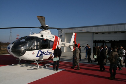 ▲孝仁会記念病院のヘリポートに待機しているドクターヘリ