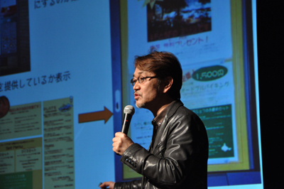 講演では、藤村氏がこれまで実践してきた事例を数多く紹介し、またその効果について詳しく説明を行い「お客さんはあなたが売っている商品を欲しがっているわけではない。その商品やサービスを買うことによって得られる効果・体験が欲しいのだ。お客さんが何を求めているかを把握し、お客さんに合わせたお店づくりを意識した瞬間から全てが変わってくる」と語りました。