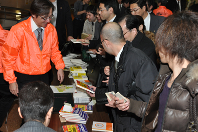 ▲藤村氏の書籍を求める人で賑わう販売コーナー