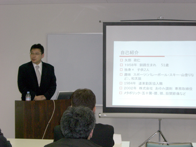 釧路支部では2月26日に幹部大学第7講を行い、あんずカンパニー須藤社長とあゆみ調剤薬局矢部氏を講師に招き、講義を行いました。