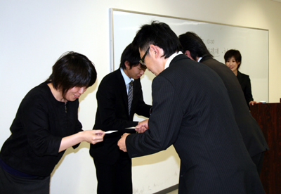 その後、名刺交換や来客対応など実技指導を行い、受講者に適切な助言を送りました。