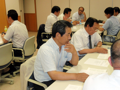 挨拶した金曽支部長は「社員教育については会員それぞれが自分なりの方法で試行錯誤を繰り返していることと思う。今日は普段なかなか打ち明けられない悩みや迷いを語り合いたい」と述べました。担当委員長の名和氏も「他社の事例を聞くことで参考になること、新しい発見を得てほしい。会員同士の実践報告から改善の糸口を探りたい」とあいさつし、グループ討論に入りました。