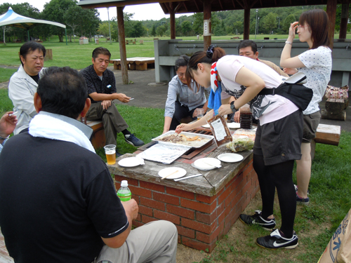 別海地区会(寺井範男会長77社)は29日、別海町内のキャンプ場で焼き肉懇談会を開き、過ぎゆく夏を惜しみながら懇親を深めました。今年の別海町は例年以上に気温が高く、この日も熱波が吹きつけるなか、参加者は地元産の肉を堪能しました。
