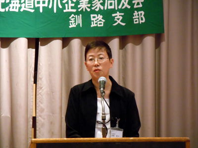 初めに同友会の活動について副幹事長の浅野葉子氏が「同友会では会員の生の声を直接聞くことができ、本音で意見交換ができるのが一番の長所でないか。私は入会して本音で語り合える仲間が増えた」と述べました。