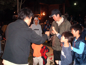 【景品として頂いた、野菜をプレゼントするゲームを行う渡辺さん】