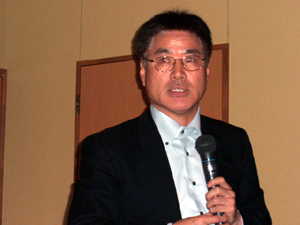 その後、?螢ぅ轡腑献Д奪? 代表取締役 磯田 忠雄氏に、自社のGPSを活用した位置情報表示システム(E-STROUT explorer)を見ながら、??E-STROUT explorerの説明、??GPS・GISの実践的活用をポイントに御話し頂きました。このシステム活用することにより、荷物を運送する車や除雪車の位置確認や、子供に持たせることによる迷子の防止、登山者持ってもらうことによる遭難の防止等、今後、様々な可能性があることについてお話し頂ました。