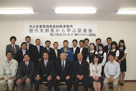 釧路支部(亀岡孝支部長)は23日に歴代の支部長から学ぶ昼食会を開催しました。1979年から17年間、2代目釧路支部支部長を務めた東邦コンサルタント会長の井上淳氏が、釧路支部の設立や同友会の歴史について報告しました。